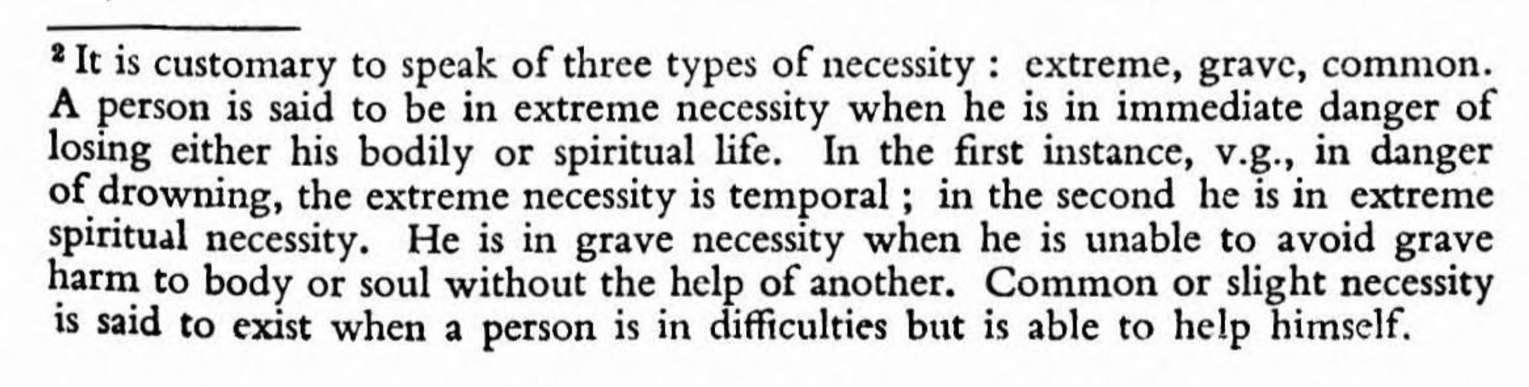 The difficulty is to determine when a proximate occasion is to be regarded as morally necessary. Much has been written by theologians in the attempt to find a rule for the measurement of this moral necessity, and a formula for its expression, but not successfully. It seems to be quite clear that a proximate occasion may be deemed morally necessary when it cannot be given up without grave scandal, or loss of good name, or without notable temporal or spiritual damage.